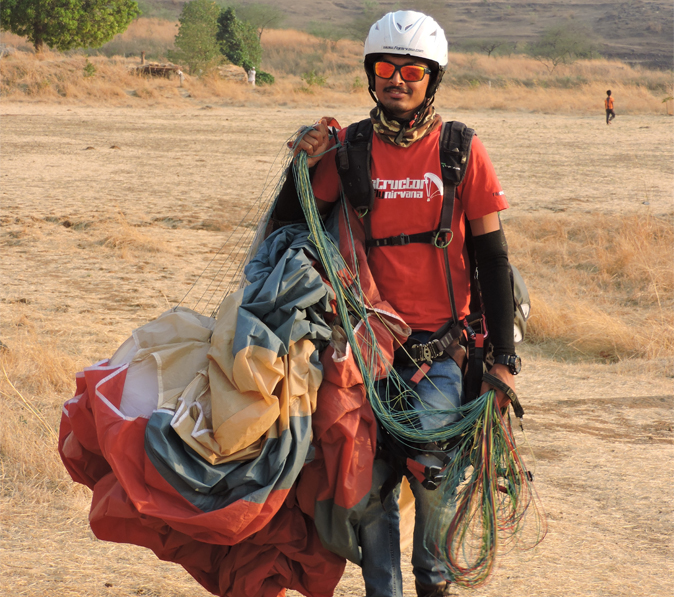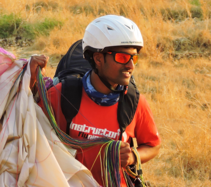 Fondly known as Bond – this affable young man is the son of the famous Shelar Mama (the farmer after whom Nirvana Adventures named the Shelar paragliding site). Bandya’s mastery over his wing compares well with his ability to handle a skittish bull. After many years of teaching, we are still amazed by the way he can not only handle his own, but also a trainee’s wing! It is a sight to behold, something you are bound to experience during your own Elementary Pilot course.